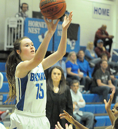 To start the second period, Rogers drove and kicked to Selig, who popped a 12-footer to increase the lead. When Evans missed two free throws, her teammate Brianna Wells rebounded only to have the Lady Hornets force a held ball. It was Bryant’s turn for the possession and, with it, Walker drained a 3 to push the Lady Hornets’ advantage to 15-9.