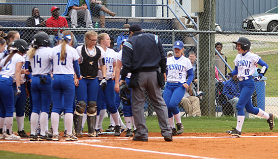 Bryant’s eruption in the home third began with Shayla McKissock reaching on an error, Julie Ward drawing a walk and Evans lining a single to center to load the bases.
