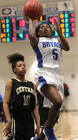 The 3’s weren’t falling and when they attacked the basket, it was a struggle to get shots up over the height. Central’s twin towers of Erynn Barnum and Mikelle Cole hardly had to leave the floor to block shots when the Lady Hornets attacked a gap. Thus, Central only committed 11 fouls and Bryant only attempted 12 free throws.
