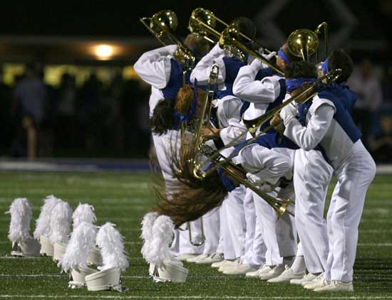 2010 Homecoming queen Stephanie Friemel and her family along with 2009 queen Kara Prichard, right, who crowned her successor. Below, members of Bryant's High School's Legacy of Bryant perform at halftime. (Photo by Rick Nation)[more]