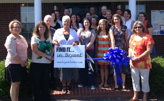 Children’s Book Author Jennifer Adams was welcomed to the Bryant Area Chamber of[more] Commerce with a ribbon cutting. Those in attendance included, front from left, Rae Ann Fields of the Chamber, Carla Atkins of First Security Bank, Karen Grice of Heartland Bank, Adams, Karissa Stephens of the Boys and Girls Club of Bryant, Kristy Byrd of The Bank of the Ozarks, Cheryl Cook of Landers Auto of Saline County; next row, Jerry Ponder of First Security Bank; next row, Jessica Bolt of Lifeline Chiropractic, Marilyn Bagby of Bryant Bethel Physical Therapy, Pam Harmon of AFLAC, Angela Hurst of The Gann Agency, and Jessica Scott of Scotty’s Web. The back row is Andy Garcia of Edward Jones Investments, Nick Gann of The Gann Agency, Julie Roltsch of Roberson Insurance, Kathy Pannell of The Bank of the Ozarks, Chris Scott of Scotty’s Web, Tim Blakely of First Security Bank and Paul Brewster of Entergy.