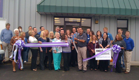 ribbon on their new location. Owners Nathan and Cindy Robinson cut the