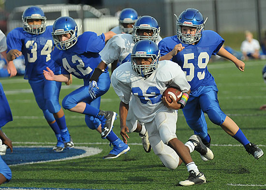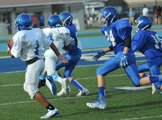 The seventh grade B teams of Bryant White of Bryant Middle School and Bryant Blue of Bethel Middle School battled in their first action of the 2017 season on Tuesday night.