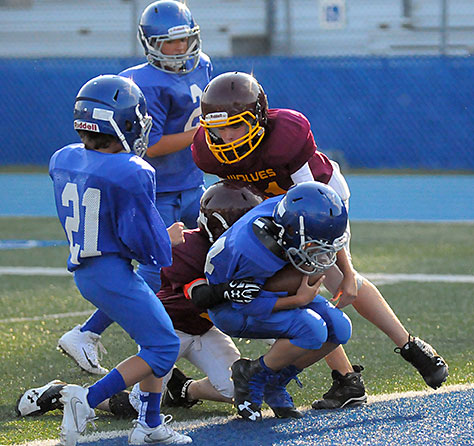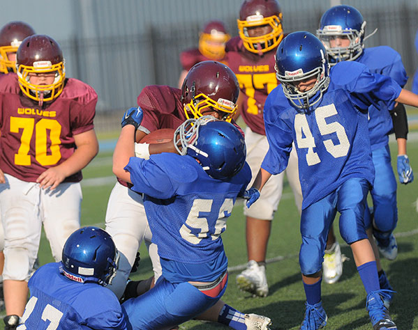 The Bryant Blue Hornets seventh grade football team of Bethel Middle School played against the Lake Hamilton Maroon Wolves in the first game of a doubleheader at Bryant Stadium Monday night.