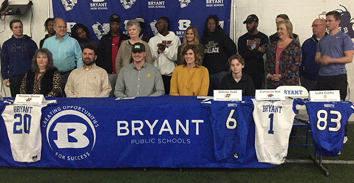 Not only did Kemp become one of the cornerstones of Bryant’s record-setting offense but he started getting attention from colleges. And, on National Signing Day on Wednesday, he inked a letter of intent to continue his education and his football career at Arkansas Tech University in Russellville.