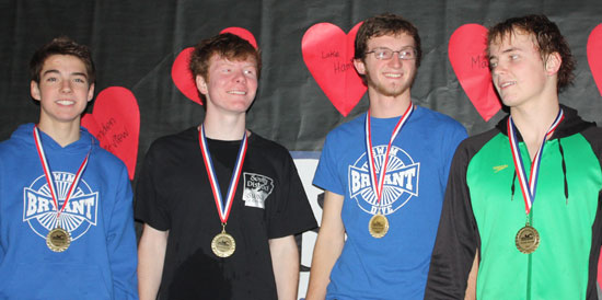 For the fifth year in a row, the Bryant High School swimming and diving team captured the South District overall championship. The meet was hosted by Bryant at the Bishop Park Aquatic Center on Saturday, Feb. 15. The Bryant teams combined to pile up 966 points. Magnolia was second with 504 points followed by El Dorado (435) and Benton (410). In all, eleven schools were represented at the meet.