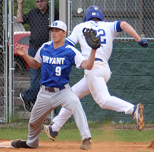 Both teams worked in several pitchers as they prepare for State. Conway used five and the fourth one, Ben Weese, surrendered Stark’s second blast and absorbed the loss. For Bryant, Austin Ledbetter, the third Hornets’ pitcher, earned the win and Coby Greiner finished to earn his seventh save of the season, which may be a school record too.