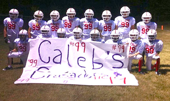 On Thursday night in a Bryant youth football game between the Bulldogs and the Raiders, the Bulldogs all wore number 99 to honor their teammate Caleb Waddle.
