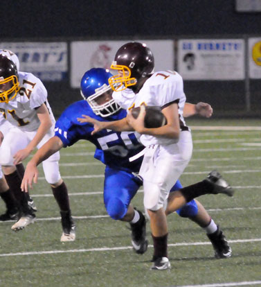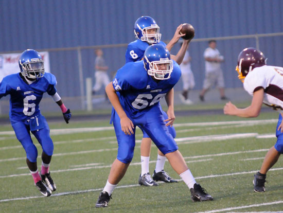 Jarrett Jacobs and Jordan Gentry combined on an 80-yard touchdown pass but[more] the Bryant Hornets freshman B team was edged 8-7 Tuesday night by Lake Hamilton at Bryant Stadium.