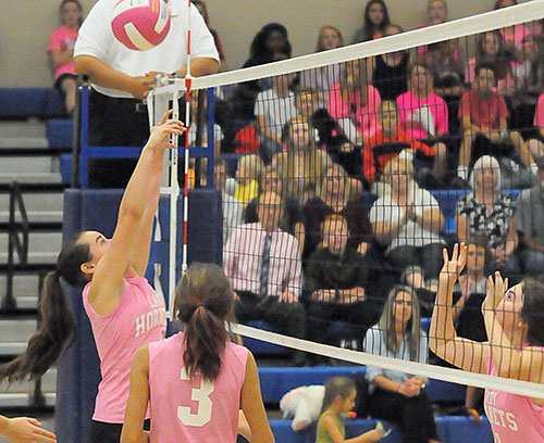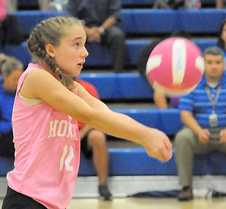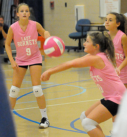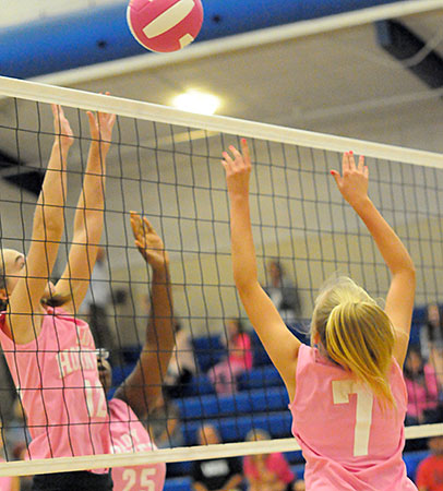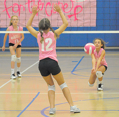 At the Bethel Middle School gym on Tuesday night, the Bryant Blue Lady Hornets seventh grade B team of Bethel hosted the Bryant White Lady Hornets seventh grade B team of Bryant Middle School as part of the Volley for the Cure.