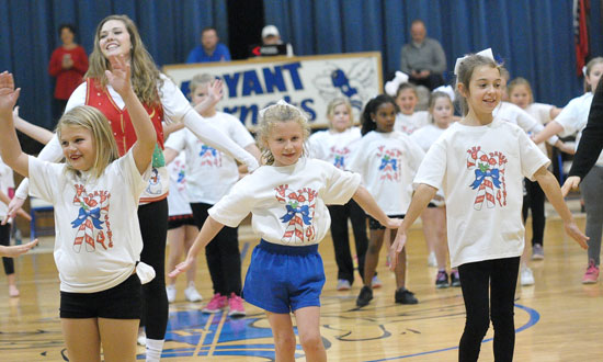 The Bryant freshman cheerleaders had a little help with their halftime performance at the Hornets’ game against the Catholic Rockets at Bryant Middle School gym on Thursday night.