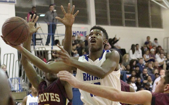 A 3 by Cedarrian Crosby at the 3:22 mark had Bryant within 54-50 but Worley answered in kind from the top of the key. Burks blocked a shot inside by Crosby then scored at the other end and Bryant coach Mike Abrahamson called a timeout with 2:36 left.